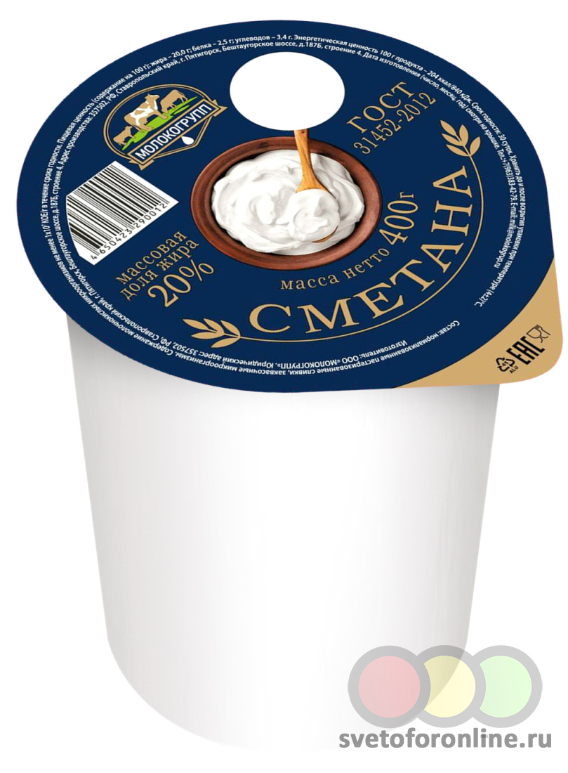 Сметана Молокогрупп 20% 400г ГОСТ БЗМЖ - Купить в магазине "Светофор" город Грязи, ул. Гагарина 1 А